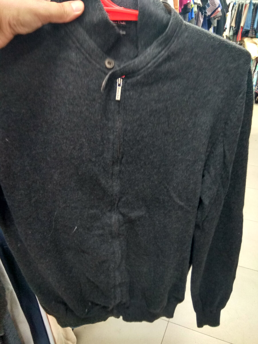 Всем — здравствуйте! Сегодня у меня очередной обзор из секонд-хенда "Лондон" со дня завоза. Так сказать, что я увидела. Мужская кофта на молнии известного бренда Massimo Dutti. Мятая — жуть. Но это извечная беда Лондона. Это не Мегахенд, где каждая вещь отпарена и вывешена в соответствии с цветовой гаммой и размером. Но что делать, как говорится: чем богаты. Кофта мягкая, в составе хлопок и кашемир — чудо просто. На рукавах декоративные заплатки. И пуговичка запасная в наличии, не потерялась при носке. А кашемира-то совсем ничего. Эх. Зато на видном месте написали: хлопок и кашемир — заманивают) А вот джемпер из 100% кашемира. Если верить интернету — Mercer & Madison — известный бренд по производству высококачественных вещей. Но, честно говоря, официального сайта не нашла, только на сайте перепродаж есть их вещи: Тот джемпер, что в магазине всем хорош — и мягкий, и цвет, и отсутствие дыр и пятен (редкость для кашемировых вещей в Лондоне). Но горловина огромная, непонятная кака
