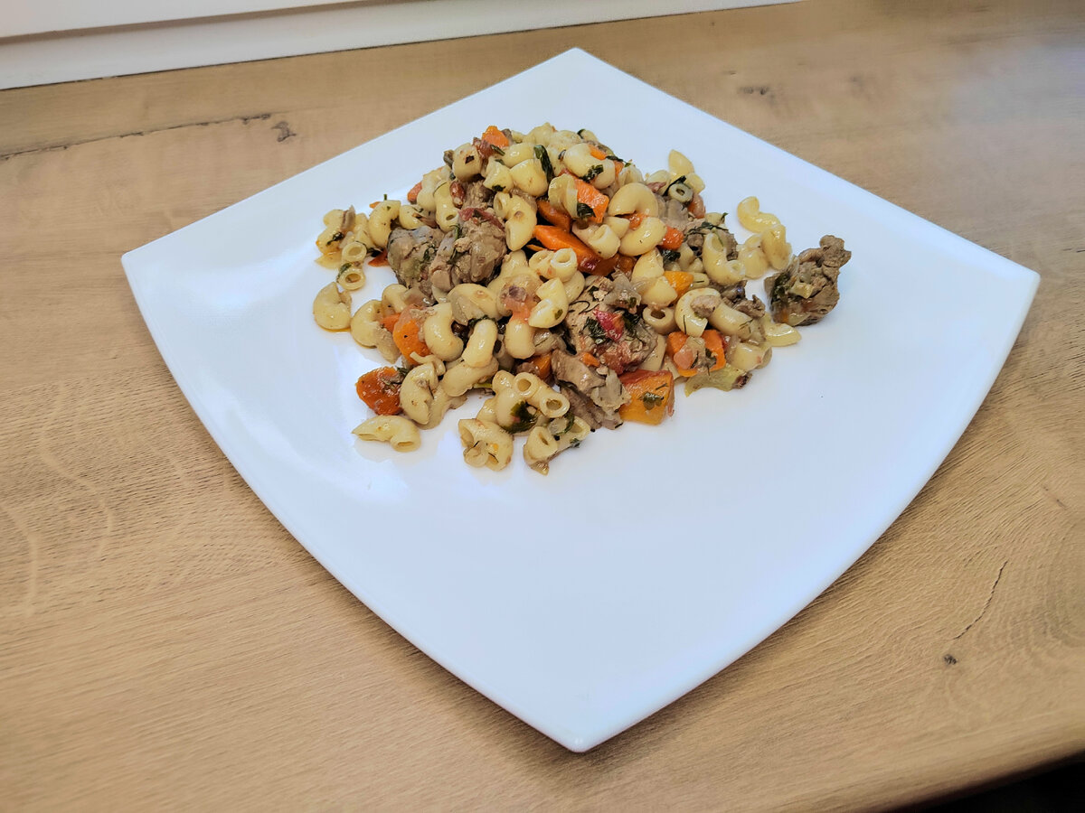 Доброго Вам времени суток, сейчас я поделюсь с Вами рецептом очень вкусных макарон, которые легко и быстро готовить. Для приготовления нам потребуются следующие ингредиенты: - макароны; - филе индейки; - болгарский перец; - свежий помидор; - морковь; - репчатый лук; - петрушка зеленая; - укроп зелёный; - чеснок; - моль; - красный молотый перец; - чёрный молотый перец; - подсолнечное масло. Первым делом отвариваем макароны и промываем в холодно воде. Варить макароны нужно не более семи минут. Нарезаем кусочками овощи и филе индейки. Выливаем на сковороду подсолнечное масло и ставим ее на огонь. Ждём полного прогревания. Чистим и давим ножом чеснок. Отправляем на сковороду чеснок. Секунд через 20 отправляем на сковороду индейку. Жарим периодически перемешивая, пока индейка не приобретет золотистый цвет. Теперь отправляем на сковороду морковь, лук, болгарский перец. Помидор. Тушим 10-15 минут, постоянно перемешивая. Отправляем на сковороду макароны. Солим и перчим по вкусу. Жарим мину