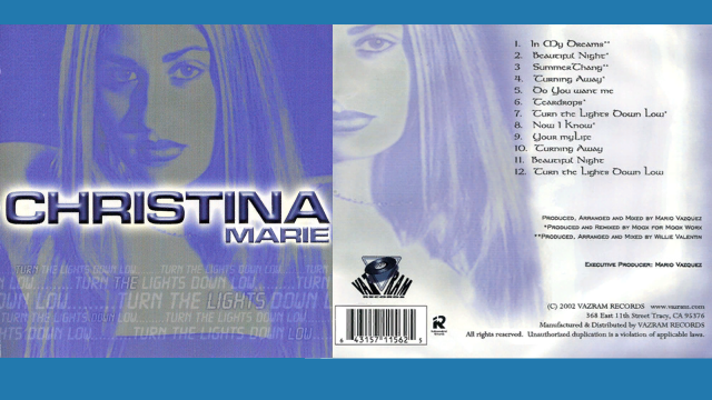 Мир музыки безграничен, и каждый день можно открыть что-то новое. 1. Christina Marie - 2002 - Turn The Lights Down Low (3✂11) Песни Кристины Мари "Turn The Lights Down Low," "Beautiful Night," and "Do You Want Me" представляют собой завораживающую смесь электронной музыки. Сам альбом выпущен