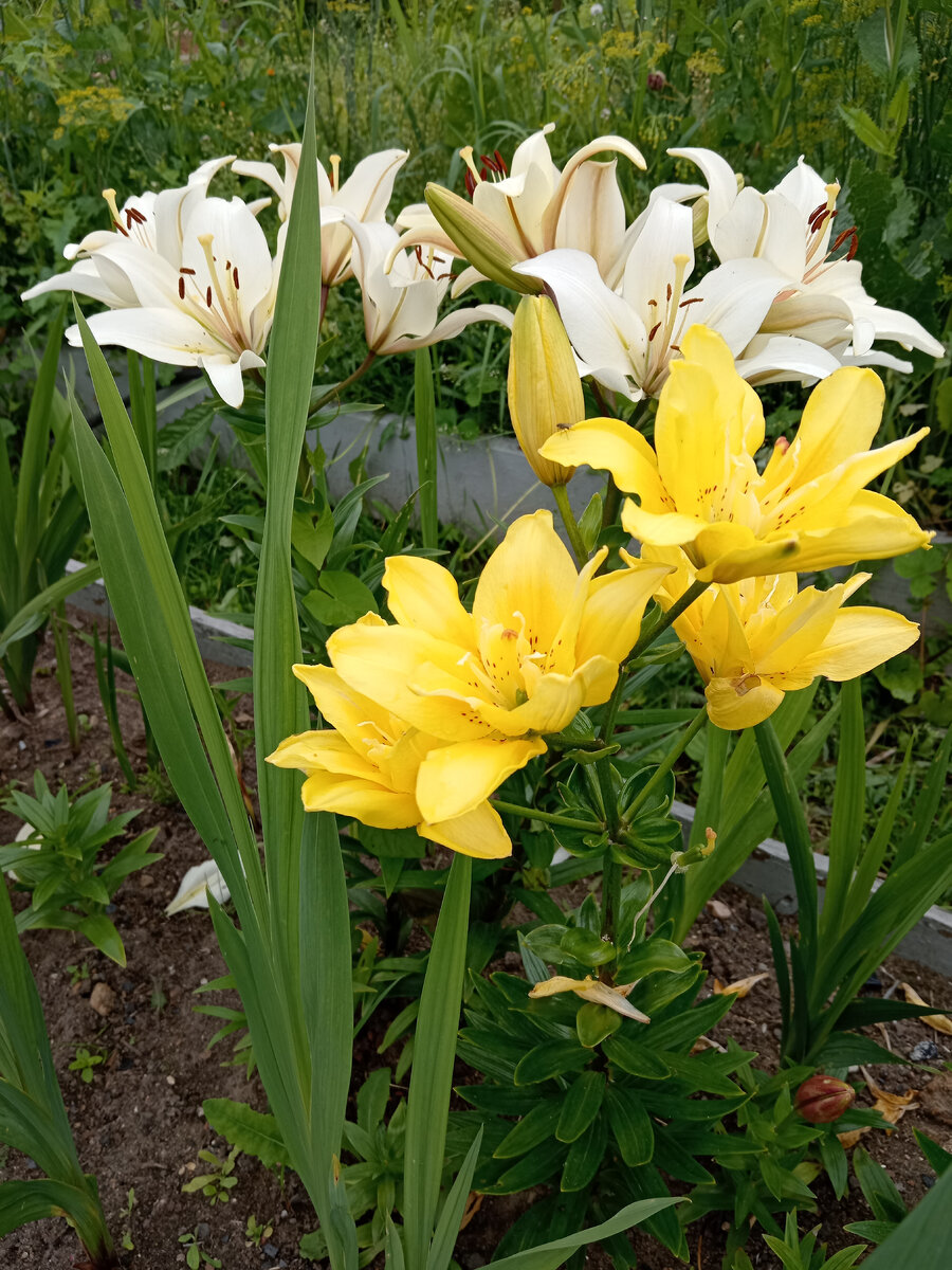Добрый, летний, солнечный денёк сегодня. Солнышко греет, ягоды поспели, цветы цветут. Их у меня в этом году немного, но всё равно полюбоваться есть чем. Лилий осталось только три сорта. Остальные луковицы пропали. Может вымерзли, может были съедены, не знаю. Лилейник самый обычный. Сажала несколько раз другие сорта, но они тоже пропадали. Луковицы гиппеаструма я на лето высаживаю на клумбы. Одна из них пустила стрелку и цветочек зацвёл. Рассаду крупных бархатцев покупала на рынке в этом году. Хотя обычно собираю осенью семена, а ранней весной высаживаю на рассаду в контейнеры. Там же купила ещё кустик вот такой хризантемы. Жёлтая хризантема подмёрзла. Я её весной пересадила. Нашла старые семена (лет 5 им) настурции и подсолнуха, посадила. Настурция цветёт, а подсолнух не взошёл, ни одно семечко не проросло. Петунии покупала в начале лета , когда на них уже была хорошая скидка. Флоксы очень люблю, их у меня три сорта. Рудбекия - золотой шар. Этот куст достался мне "в наследство" о