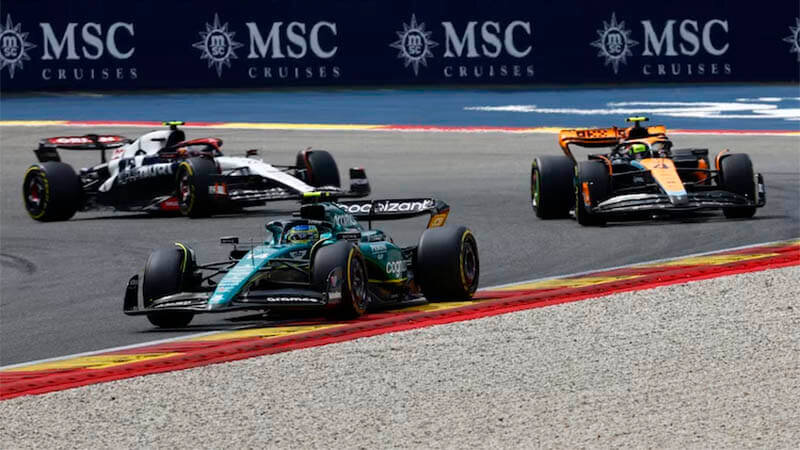 Звезда «Aston Martin» Фернандо Алонсо финишировал пятым на Гран-при Бельгии на трассе Спа-Франкоршам, но лишь немного опередил Льюиса Хэмилтона из «Mercedes» в личном зачете Формулы-1. В бельгийском спринте мы стали свидетелями редкой ошибки двукратного чемпиона Ф1 Фернандо Алонсо, когда испанец соскользнул с трассы в свой 42-й день рождения и ушел с пустыми руками. В основном Гран-при было обычное сильное выступление 32-кратного победителя Гран-при, однако в Арденнах также стало понятно: времена, когда «зеленые» были второй силой после «Red Bull Racing», прошли. В Бельгии «Aston Martin» повезло с погодой: «McLaren» вовсю рассчитывала, что на Гран-при тоже будет дождь, машины подрезали под большую прижимную силу. Но в Гран-при трасса в основном оставалась сухой, поэтому Ландо Норрис потерял много времени. В двенадцатой гонке в этом году Алонсо занял девятое место в пятерке лучших (девятым был его напарник Лэнс Стролл). «Обе машины в первой десятке — это здорово», — сказал Алонсо. «Мы б