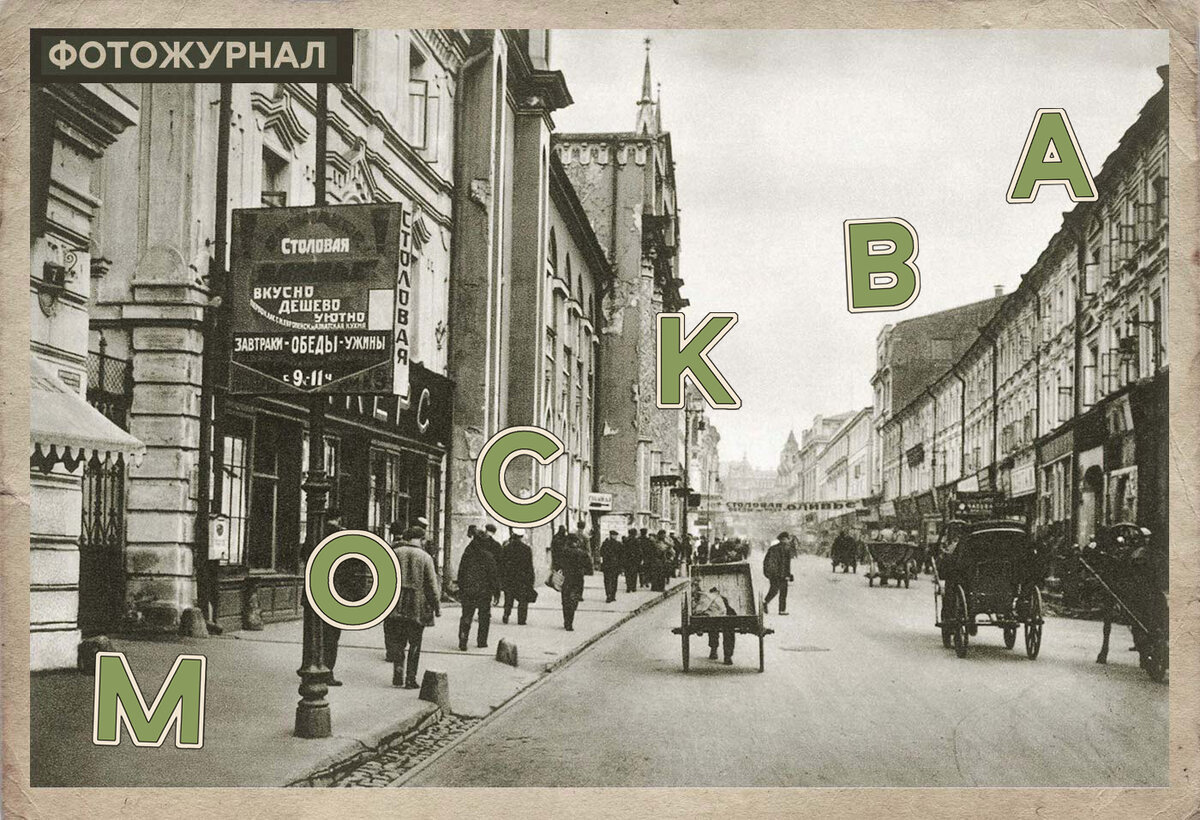 «Внимание: Столовая ОЛИВЬЕ: вкусно, дешево, уютно!» - вывеска на столбе на Никольской улице в Москве. Чуть ниже: «Завтраки, обеды, ужины. с 9 ч.-11 ч.». И совсем мелкими буквами, по дуге: «Первоклассн. европейск. и азиатская кухня». Фотография впервые опубликована в фотоальбоме Moskau, вышедшем в Берлине под редакцией Алексея Алексеевича Сидорова, преподавателя МГУ, искусствоведа и коллекционера, в 1928 году (удивительный был все-таки год!) Эта книга – библиографическая редкость, и заполучить ее в коллекцию будущего музея писем – наша большая мечта и цель. Об этой великолепной книге и о ее составителе мы еще обязательно расскажем и будем публиковать фотографии оттуда, а пока продолжим изучать снимок. Если присмотреться, реклама столовой «Оливье» встречается на фотографии аж три (!) раза. Во-первых, на столбе. Во-вторых, – смотрим внимательно – на растяжке через дорогу: И, в-третьих, – хотя мы не уверены на все сто, но рискнем предположить: слева, на табличке, над вот такой стрелкой