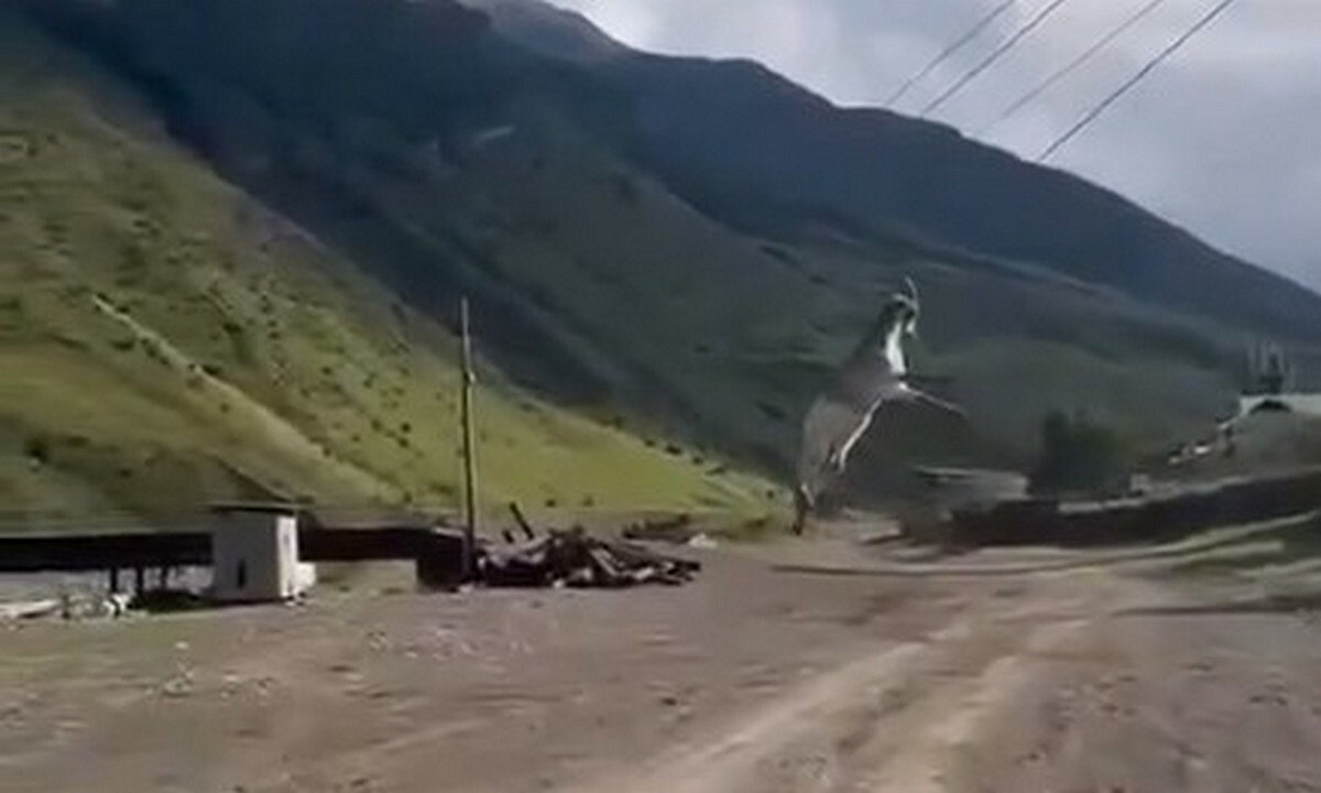 В Дагестане козёл повис на рогах на высоковольтной линии Необычное происшествие зафиксировали в Дагестане. Там козёл выпрыгнул из грузовика, перевозившего скот и зацепился рогами за провод высоковольтной линии.