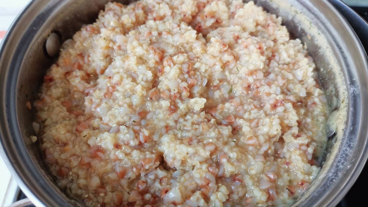 Каша 2 в 1 и вкусная подливка с грибами и сосисками