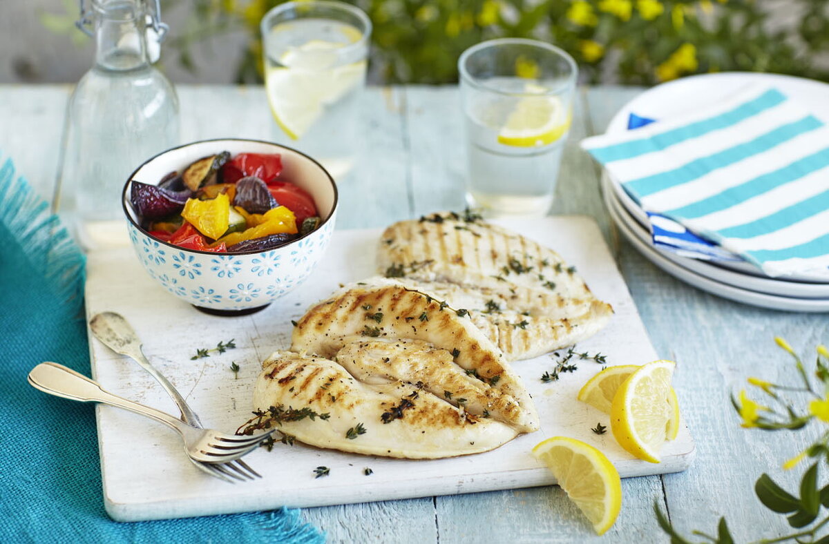 Смешать маринад Для простого маринада, который отлично подходит для курицы (а также рыбы), смешайте 6 столовых ложек лимонного сока с 6 столовыми ложками оливкового масла, 1 измельченный зубчик чеснока и несколько веточек тимьяна или розмарина . Бабочка разрез Нарежьте куриные грудки бабочками, чтобы они стали тоньше и чтобы они полностью прожарились. Для этого положите куриную грудку на доску и положите одну руку сверху, а затем острым ножом осторожно прорежьте ее посередине почти до конца. Раскройте и положите плашмя. Встряхните и уберите в пакет Положите курицу и маринад в большой пакет с замком и закройте его. Аккуратно встряхните, чтобы вся курица была покрыта. Поместите пакет в большую посуду в холодильник и оставьте на 2–3 часа, время от времени осторожно встряхивая пакет, чтобы мясо равномерно промариновалось. Время готовить Примерно за 20 минут до приготовления достаньте курицу из холодильника, слейте маринад и выбросьте. Для равномерного приготовления мясо должно быть ком
