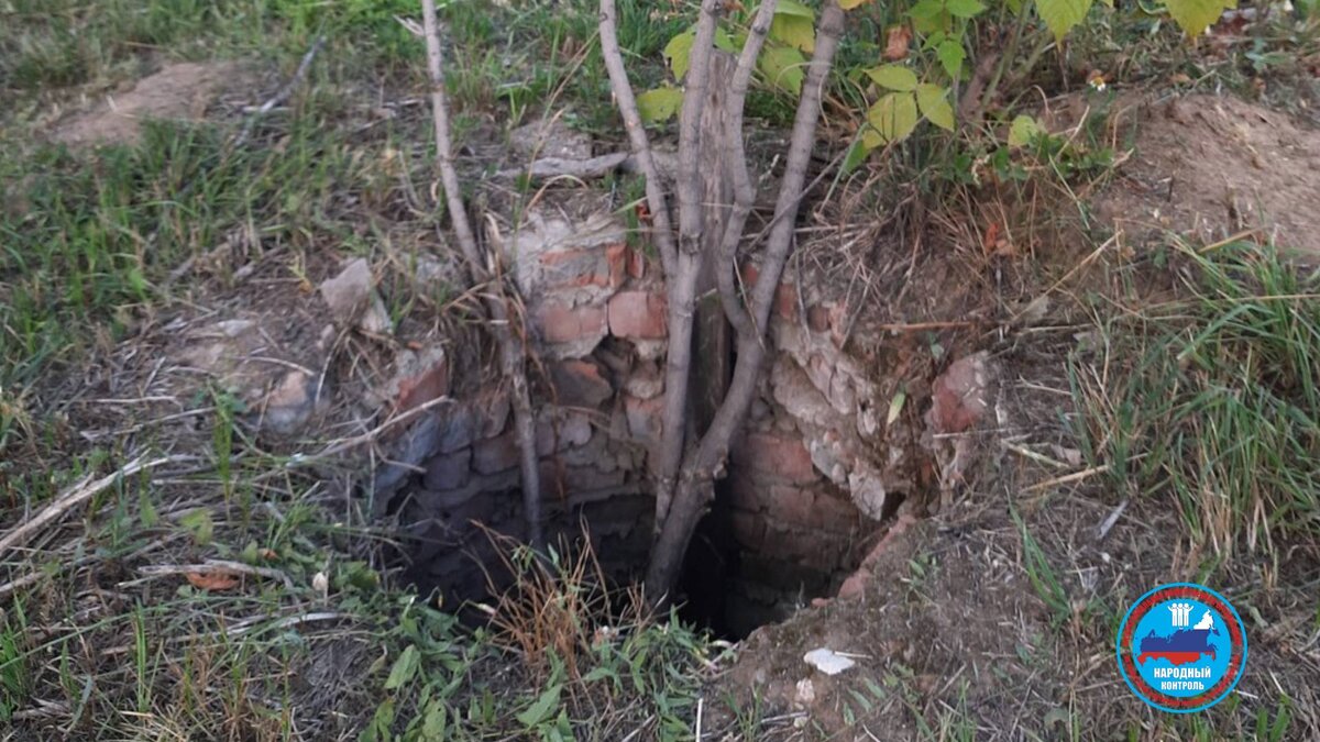 Открыт колодец на зелёной зоне, вероятно падение человека или животного
