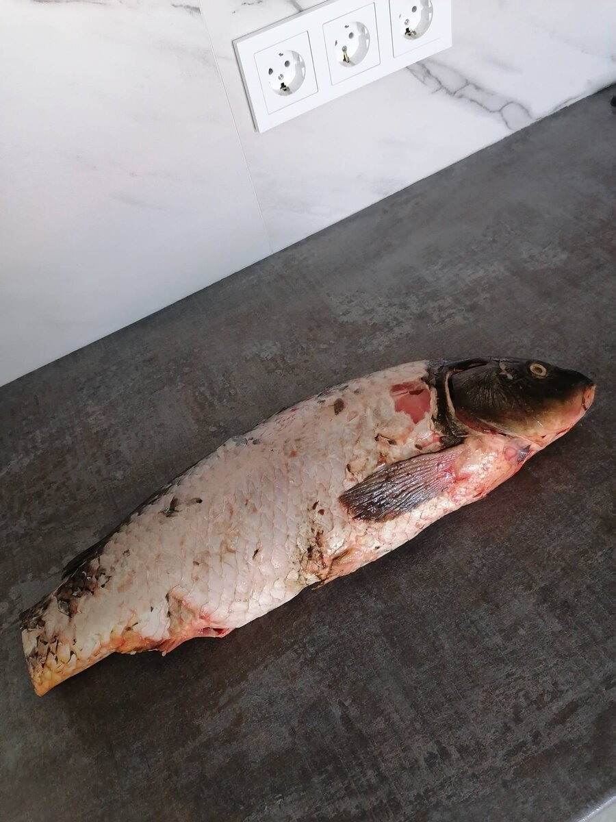 Моем и разделываем сазана на филе и рёбра. Солим. Далее готовим маринад : 3 столовые ложки гранатового соуса, 3 столовые ложки оливкового масла, 2 столовые ложки томатной пасты и смесь перцев по вкусу. Хорошо перемешиваем и убираем в холодильник на час.
