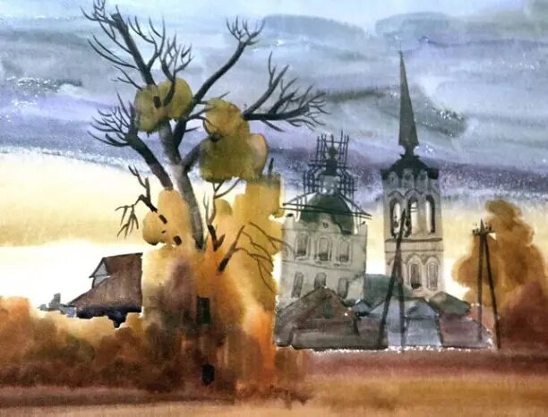 Пока не смогли сформулировать для себя секрет странной привлекательности акварелей Александра Новика (род. в 1949 году в Тюмени) - но на них почему-то хочется смотреть. Удивляют особое чувство цвета и вместе с этим - отсутствие предпочтения какой-то одной цветовой гаммы другим, смелые сочетания красок, глубина, метафоричность, а где-то - и недосказанность. Серые оттенки (к слову, не скучные и не пасмурные) соседствуют с голубыми, винными, золотистыми, изумрудными... Что за драмы развиваются на этих старых городских улицах, между этими людьми, лица и фигуры которых не всегда четко обозначены на картинах? Мы можем только догадываться об этом, но здесь определенно идет некая жизнь, и она притягивает. Прочитав о художнике, узнали и другие вещи, которые запомнились: оказывается, Александр Новик в юности профессионально занимался боксом, а еще он любит живопись Врубеля и поэзию Мандельштама и Тарковского. И да, он уделяет первостепенное значение цвету, считая его непосредственное видение осо