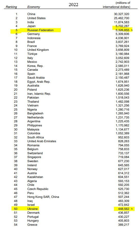 1. Обидный момент для Запада и особенно для Германии. Немцы так старались обвалить русскую экономику своими санкциями, что не заметили, как американцы зашли к ним с тыла и всласть поураганили на заднем дворе. Всемирный банк выложил новые оценки ВВП (ППС) стран мира за 2022 год, и по этому ключевому показателю размера экономики Россия обогнала Германию, заняв пятое место в мире (ссылка). Этим примечательность для нас рейтинга от ВБ не ограничивается.