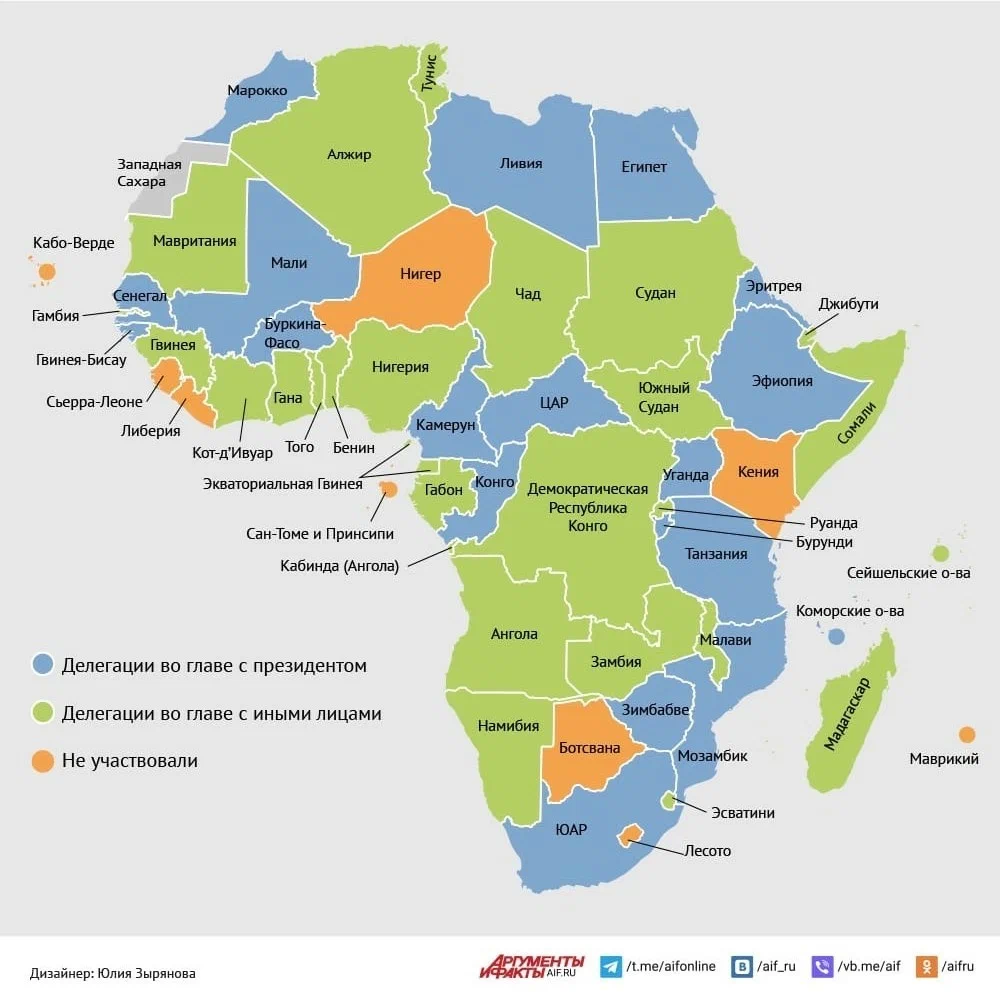 27-28 июля состоялся второй форум "Россия-Африка" (первый проводили аж в 2019 году). Официальные российские медиа муссируют эту тему как очередную победу-многоходовочку нашего гениального верховного стратега! РИА-новости, Российская газета смакуют данные о количестве заключенных контрактов, а также тот факт, что на форум из 54 стран африканского континента 45 прислали свои делегации (9 оставшихся следует списать на злокозненные происки НАТО, естественно).