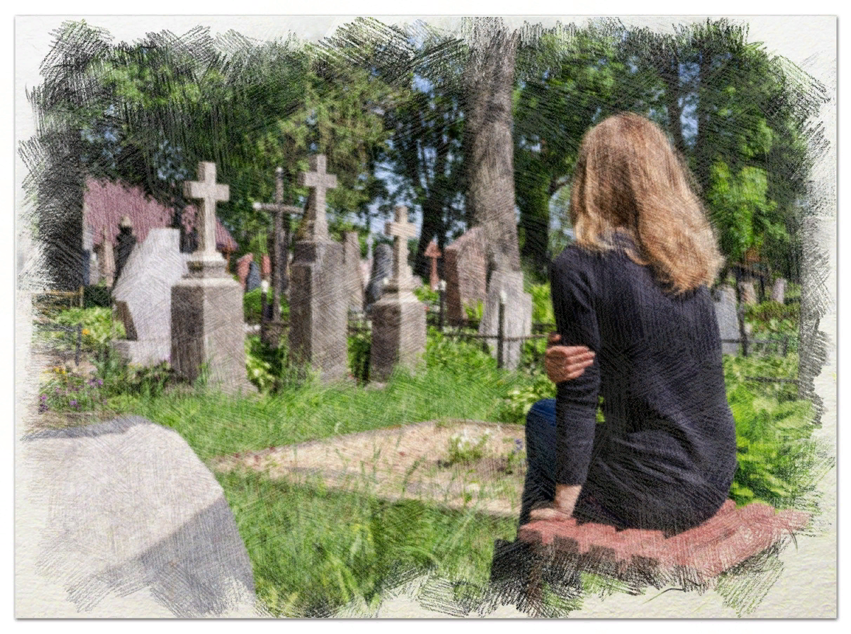 Она так измучена. Нет сил, двигаться. Вдова обняла надгробье, и закрыв глаза, продолжила лить слёзы.