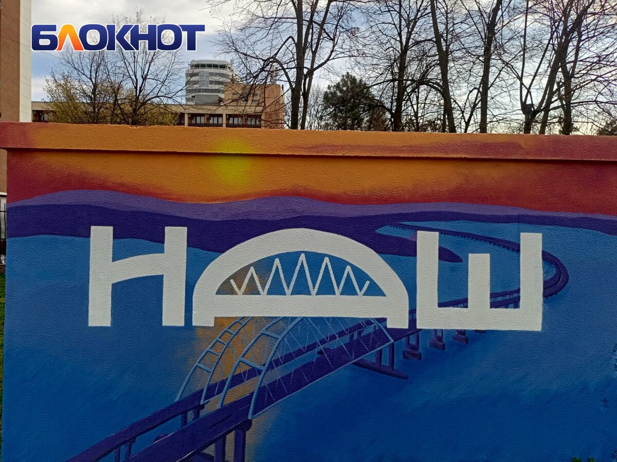 На Кубанской набережной Краснодара к 1 августа закрасили мурал с изображением Крымского моста и с подписью «Наш». Фото сделано весной текущего года Долгое время на трансформаторной станции на пути к Затону слева от ресторана «Станъ» красовалось яркое изображение во всю стену Крымского моста. Художник явно постарался, отразив на мурале характерные черты путепровода. Надпись под картиной уличного художника была простой и лаконичной: «Наш». По словам краснодарцев, изображение закрасили коммунальщики по неизвестным им причинам. К началу лета картина исчезла "Каждый вечер гуляю на Кубанской набережной с собакой", - обратила внимание на исчезновение граффити с Крымским мостом Татьяна Лютаева. – "Больше месяца назад Крымский мост закрасили серой блеклой краской, хотя он был определённой фишкой и просуществовал, если не изменяет память, больше года. Было явно, что художник постарался, мурал был очень красивым. Зачем и кто это сделал, я не знаю, но вместо красоты и патриотического творчества о
