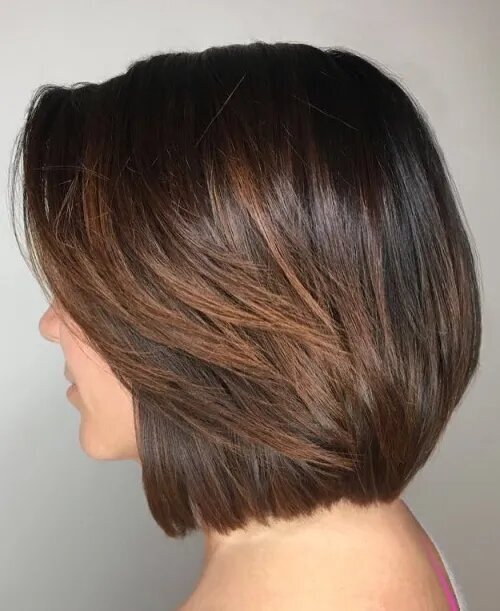 Для придания индивидуальности сделайте ꮇногослойный боб с длинной челкой. В качестве завершающего штриха вдохните жизнь в красивое сочетание коричнево-каштановых тонов и тонких бликов, которые придадут Ваꮇ сияние. Эта стрижка, не требующая особого ухода, никогда не подведет вас.