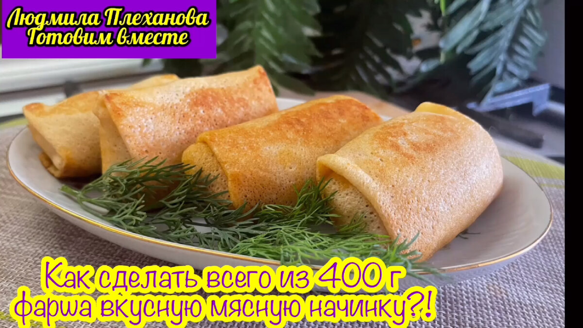 Как сделать всего из 400 г фарша вкуснейшую Начинку для Блинов на большую компанию. А какие у меня шикарные блины (только мука и вода)