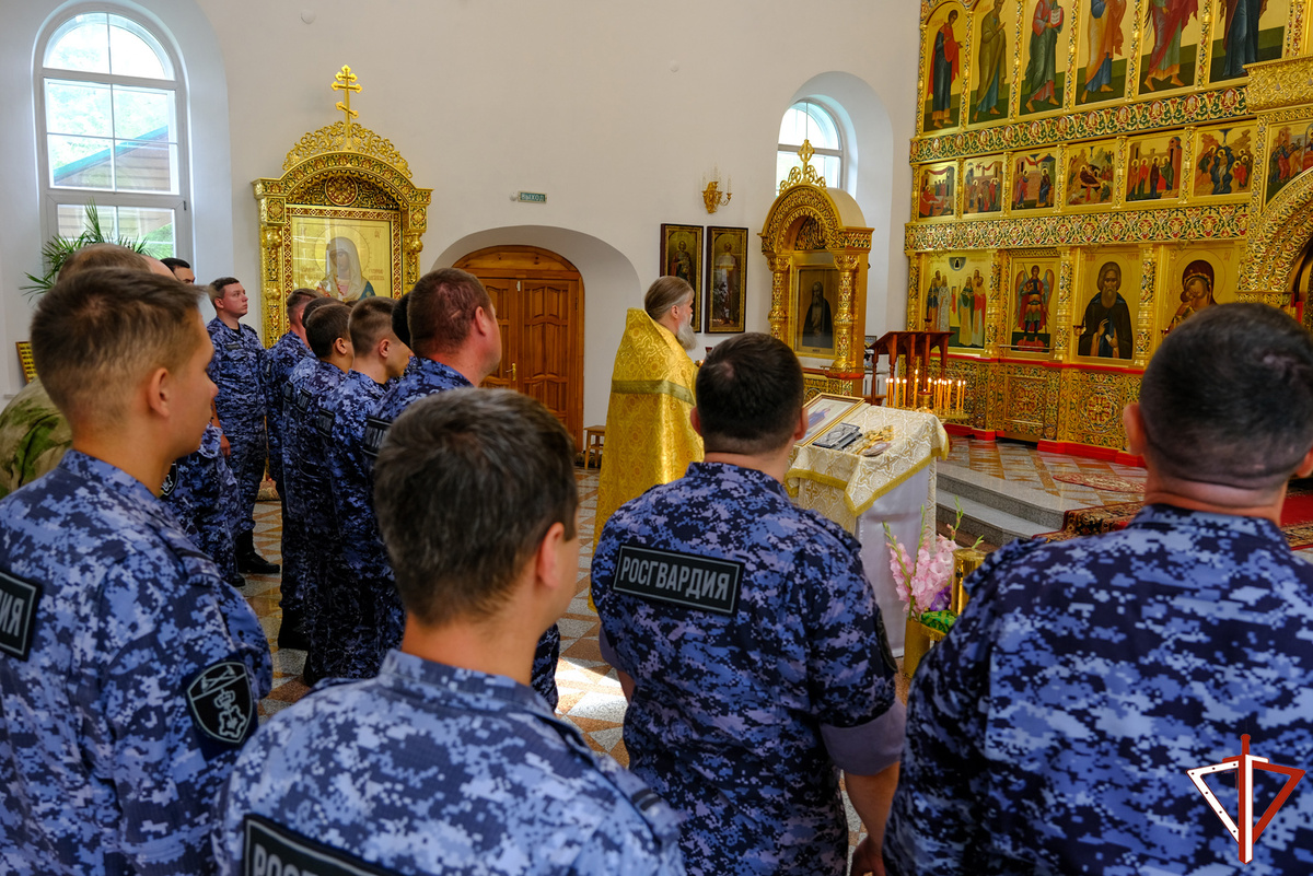 Божественную литургию для росгвардейцев провел настоятель храма, протоиерей Александр Бачурин. Отец Александр совершил молебное пение, рассказал о важности веры в любые времена и обратился к присутствующим со словами наставления: «Мы молимся нашему равноапостольному князю Владимиру - небесному покровителю Росгвардии, чтобы укрепить наш дух, нашу решимость в защите нашего Отечества, наших близких, нашего народа, которые надеются, что мы не подведем, поможем, защитим. Просим богатырского духа, просим благосло