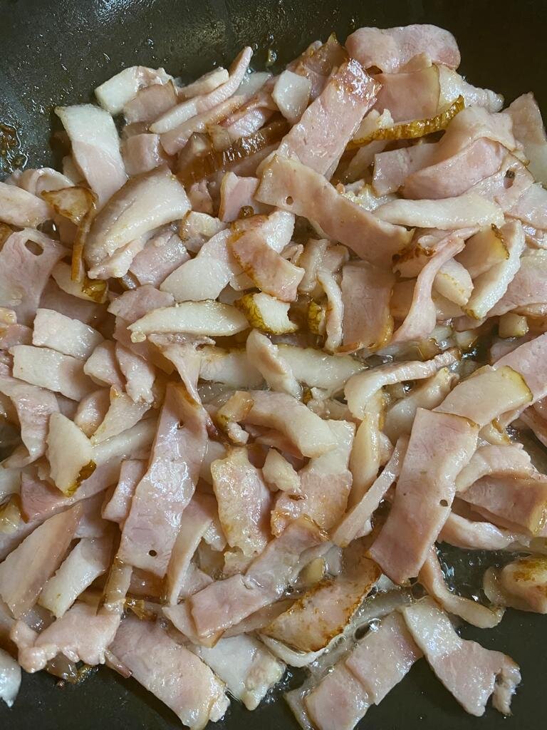 Ингридиенты: Приготовление: Бекон нарезать тонкой соломкой и обжарить на сковороде 4-5 мин, чтобы начал вытапливаться жир, в бекон можно добавить чеснок и тоже немного его обжарить, однако я не люблю жаренный чеснок, поэтому его я добляю в соус, в конце немного поперчить свежемолотым перцем, перемешать и снять с огня, можно также довавить немного зелени по желанию. В миске соединить: яичные желтки, сливки, тертый сыр, соль, перец и еще я добавляю чеснок пропущенный через пресс. Венчиком хорошо перемешиваю получившийся соус. Спагетти отвариваю в большом количестве кипящей подсоленной воды до состояния аль денте (с момента закипания варить на 1 минуту меньше, чем указанно на упаковке). Откинуть спагетти на дуршлаг, соединить с обжаренным беконом и перемешать. Добавить к спагетти сливочный соус. И быстро перемешать пасту с соусом, от жара пасты, желтки в соусе дойдут до готовности. Можно подвать к столу. Перед подачей, по желанию можно посыпать каждую порцию тертым сыром и зеленью. Прия