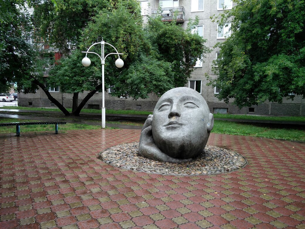 На днях мы с подругой гуляли по улице Щетинкина в Абакане. Сколько раз я по ней ходила, и мимо маленького скверика, где установлена скульптура головы с прикрытыми глазами, которую подпирает рука. Тогда, поскольку я не так давно живу в Абакане, спросила у подруги, знает ли она название этой скульптуры. На что Кира лишь пожала плечами, но отметила, что помнит ее с самого детства. И вот тогда мне захотелось разобраться подробнее. Ответ на вопрос, как называется скульптура, нашелся быстро — «Мечтатель». Была открыта в 2007 году, хотя в некоторых источниках указан 2009-й. Кстати, тогда же в Абакане был установлен памятник Пушкину, а неподалеку разместилось целое собрание героев его сказок, но к этой композиции мы обратимся в другой раз. Автор «Мечтателя» — Константин Зинич. Рядом с ней стоят лавочки, чтобы можно было присесть и тоже философски призадуматься о жизни. В одном из источников, описывающих эту декоративную скульптуру, встречается очень милое второе название, скорее, народное проз