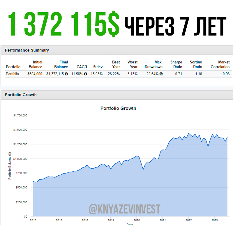 И, если доходность повторится, то капитал может составить через 7 лет тот самый 1 372 115$.