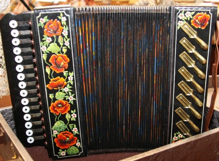 В 1830 г. в России было организовано изготовление гармоней. Делал их тульский мастер Иван Сизов. Все гармошки имели особенность: одна и та же кнопка на разжим и сжим мехов издавала разные звуки. При игре на таких гармошках нужно было, прежде всего, владеть техникой игры мехами, чтобы правильно вывести мелодию. Эту проблему решили ливенские кустари. На гармонях ливенских мастеров звук не менялся при смене меха. У ливенской гармошки мастера увеличили количество борин (до 30 – 40), т.е. меха были невероятно длинными. Такую гармошку можно было буквально обмотать вокруг себя, т.к. при полном растяжении меха её длина достигала двух метров. Так появилась в 60 – 70-х гг. XIX в. ливенская гармонь («ливенка») – местная разновидность русской гармони. Производство, в основном, было сосредоточено близ Ливен в деревнях Сосновке и Речице. Из мастеров до нашего времени дошли фамилии Занина, Тюрина, Нечаева. Хотя производство и было кустарным, широко использовалась подетальная специализация. Разные лю