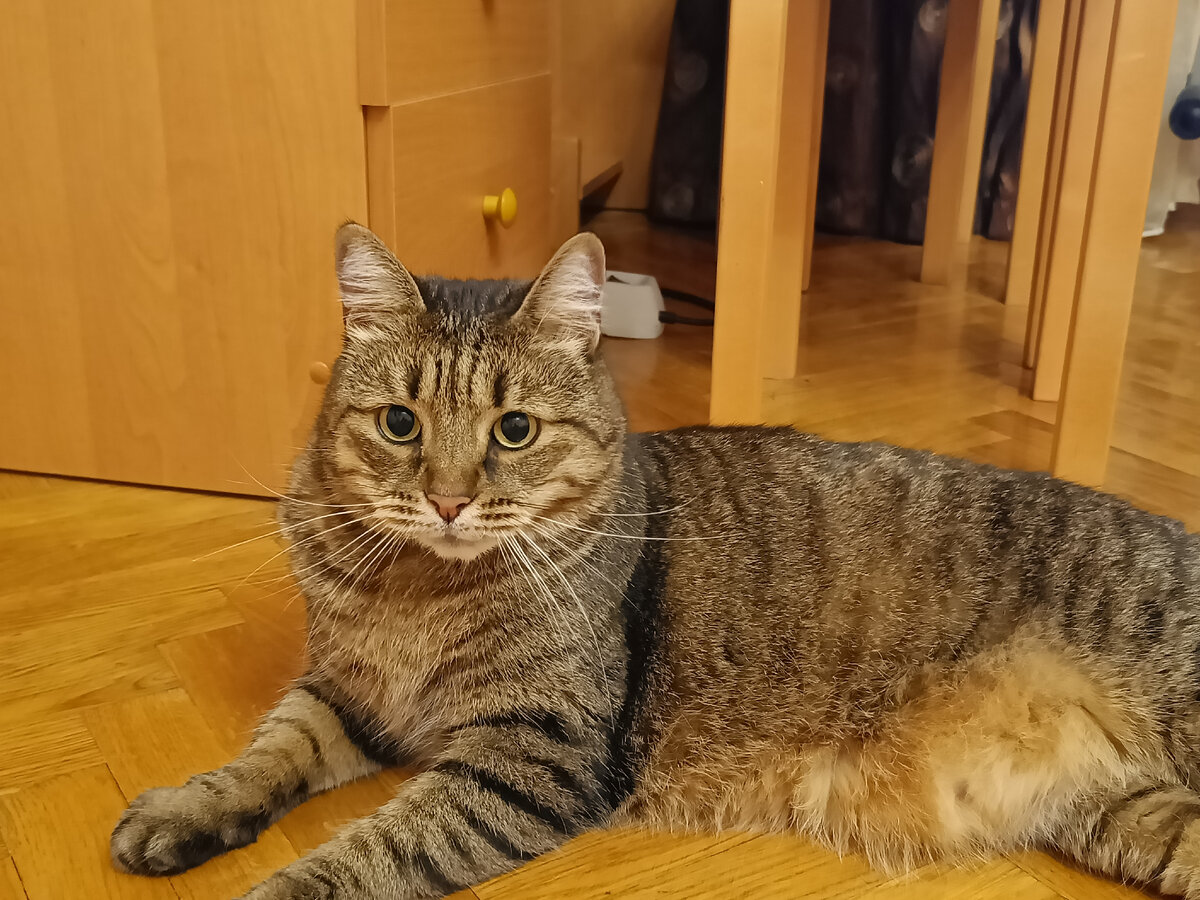 Остались мы с Масиком вдвоем. Как проходят наши дни? Приоткрою дверцу в нашу жизнь и поделюсь с вами распорядком дня одинокой женщины за сорок и её кота. Подъем в будни ранний, будильник у меня на 4.15, встаю чуть позднее. Масика такой ранний подъем что-то не очень устраивает: он до последнего лежит бревнышком на кровати, слегка недовольно косясь на меня. Но потом все же встает и приходит на кухню, когда я уже умоюсь и положу ему в миску завтрак. Ест неохотно - в такую рань у него нет аппетита. Боня же, когда был жив, вставал со мной и пока я умывалась, он караулил у миски... Потом я убегаю на работу и домой прихожу часов в 9. Масик радостно меня встречает, знает, что сейчас будет утренний почес. Мою руки, переодеваюсь и бухаюсь на кровать, подставляя правую руку, в которую Масик утыкается носом, а своей лапищей с когтищами начинает скрести по ней. Больно, признаюсь, порой кожа в клочья. Но терплю, сколько могу: ради любимого кота. Потом мы перемещаемся на кухню: пришла очередь п