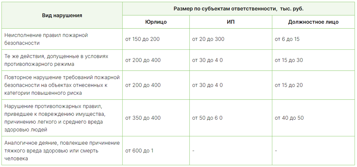 Штраф за нарушение пожарной безопасности