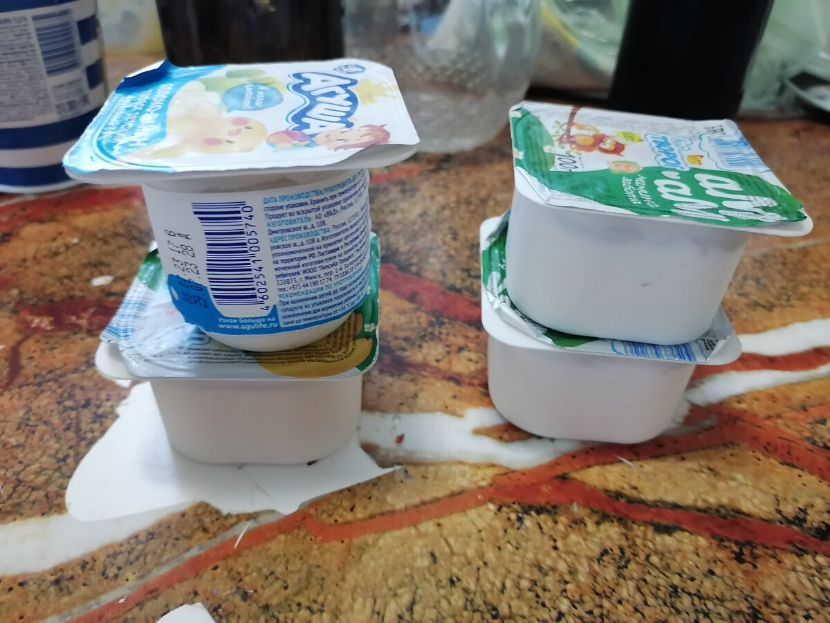 Накупили мы как то ребёнку творожком детских, типа Агуши, Ам-Ам (не реклама), а он почему то решил несколько дней побастовать и максимум из тюбика есть творог. Накопилось их не одна коробочка. Плюс были ещё парочку открытых. Выкидывать жалко, вроде пару дней просроченные. Но и ребёнку уже не дашь. И тут решили мы, что нужно их превратить в сырники, которые наш сын слопает с удовольствием) только пришлось прикупить ещё пачку обычного творога, чтобы тесто не было слишком жидким от мягких творожков. В общем добавляем в одну миску обычный творог, все детские жидкие творожки, пару яиц, немного сахара, разрыхлителя и муку. Замешиваем тесто и формируем сырники. Жарим до золотистой корочки и наслаждаемся) ну и конечно кормим малышей)