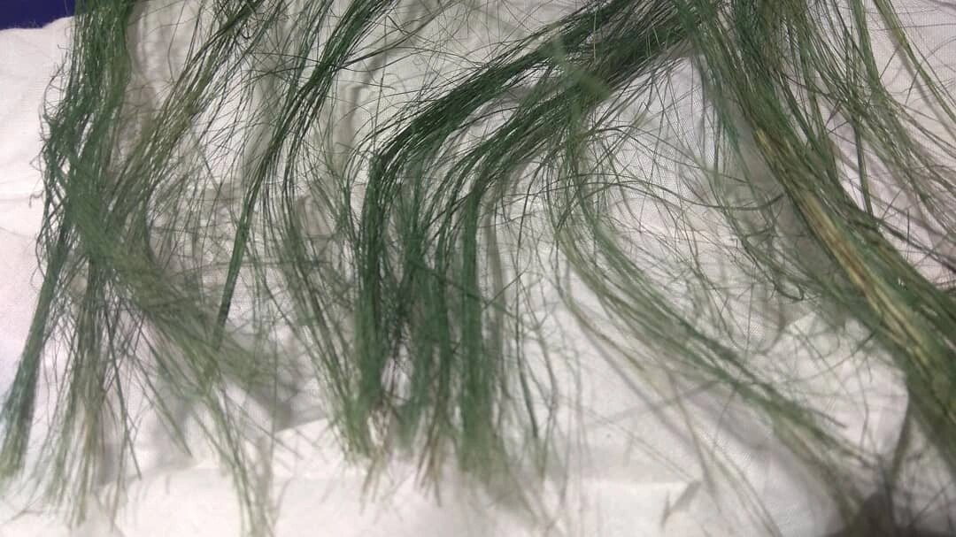 - Первым делом нужно выкрасить лён разными цветами, зелёный, светло-зелёный и просто некрашеный лён пригодится тоже. Красим аэрографом, так лён не будет слипаться и работа сильно упроститься.