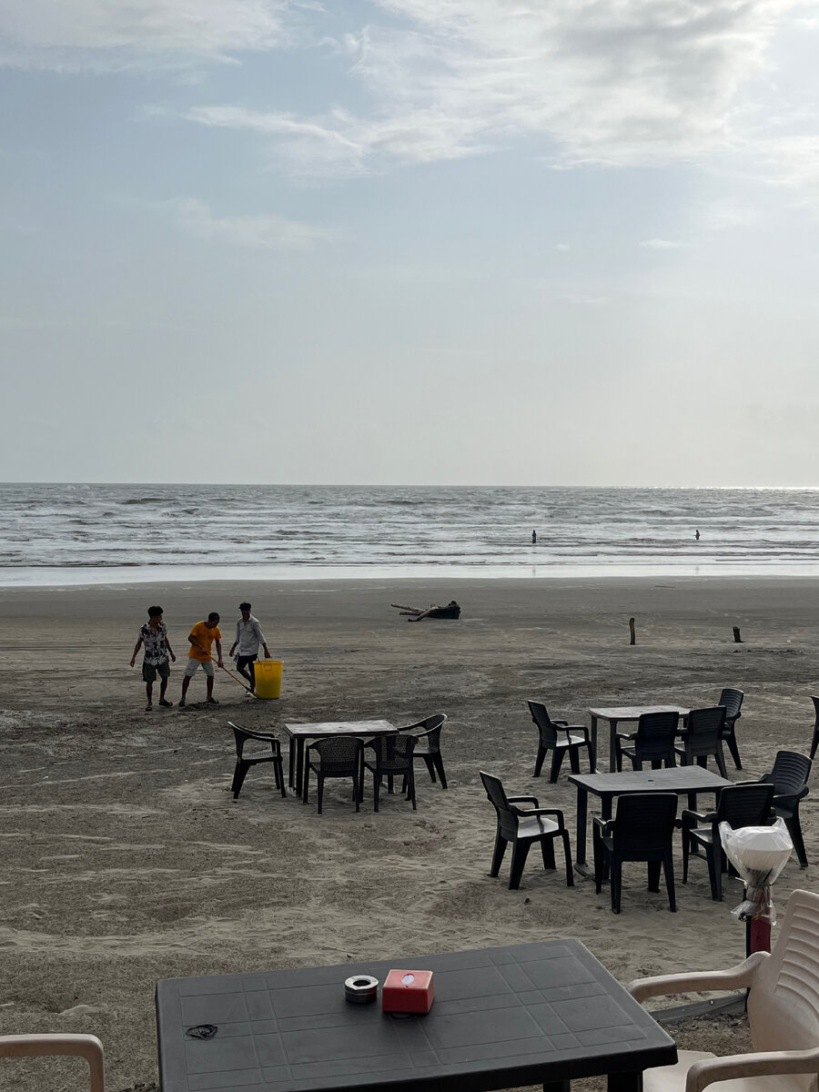 вручную чистят пляж от мусора, принесенного морем. И это не сезон;)