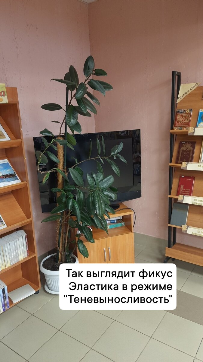 Теневыносливость ❌️ не равно тенелюбивость. Всем растениям нужен свет и их теневыносливость заключается в том , что кто-то умирает быстрее без света, а кто-то стойко держится и крепится, но финал в итоге один. При этом часто страдает декоративность растения - из пышного красавца оно превращается в унылого доходягу. Сегодня в библиотеке я встретила фикус эластика в режиме " Теневыносливость". Длинный и бесформенный - весь подперт костылями, перевязан тряпочками и веревочками 🤦♀️ А при должной, хотя бы обрезке, он мог бы быть куда краше. 👇 Ещё частый житель библиотек и поликлинник - теневыносливая Драцена и разросшаяся Монстера 😅
