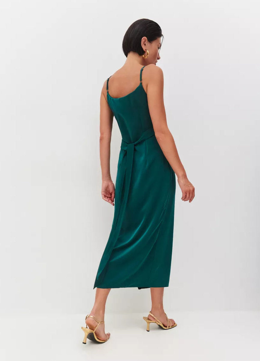 Театральный Романтик у нас - узкокостная девушка с наличием форм в нужных местах. Плечи у нее не покатые, а прямые, бедра - крутые, личико пикантное. Что подойдет такому типу? Сам Кибби пишет про «что-то округлое с элементами заостренного». Попробуем собрать капсулу для такого сложного типажа на нашем обширном маркетплейсе. Да: Нет: Пойдем от концепции «якорной вещи»: выбираем красивый акцентный предмет одежды и к нему подбираем верх, к верху - низ, к низу - другой верх, к этому верху - другой низ и так далее. Уууух, обожаю эту игру! Никогда не знаешь, куда она тебя заведет :-) Классные недорогие вещи для Театрального Романтика: Я обожаю платья и поэтому в качестве «якорной вещи» решила выбрать именно платье. Платье на запАх с длинным поясом 2600 р. Гладкая струящаяся ткань, острый вырез и асимметричный крой превращают это платье в идеальный вариант именно для Театральных Романтиков. Подбираем к нашей «якорной вещи» верх Для яркой внешности (и не менее яркого платья) просто напрашивает