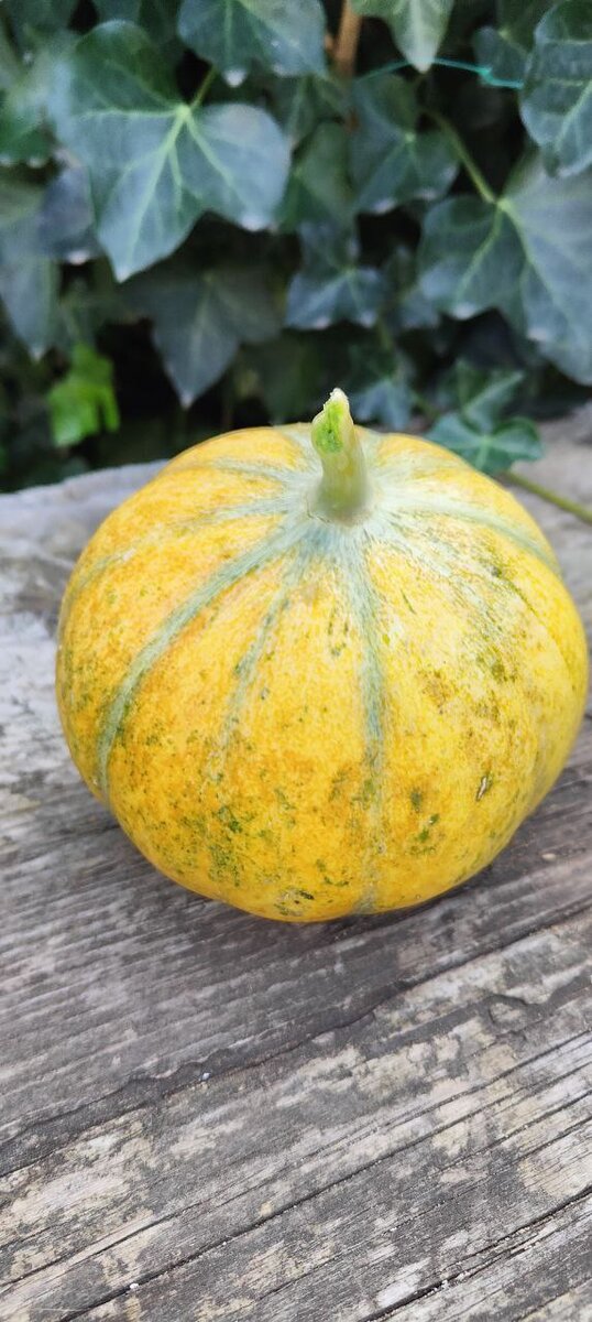 Открытие сезона - дыня Шаранте. Весна-лето 2023 для побережья Азовского моря выдались достаточно холодными (май-июнь-июль). При этом, к сожалению, еще и влажными. Спасибо природе, что были тропические дожди, а не ураганы как в Краснодарском крае. Климат меняется. С изменением климата придется менять сорта растений. Приспосабливаться. Ибо в этот год в открытом грунте не выдерживают даже беспроблемные тыквы. Все сжирают грибки. Шаранте оказалась очень устойчивой. Небольшой старинный французский сорт порционной дыни. Диаметр от 7 до 10 см. До 1 кг весом. Характерная особенность - зеленые полоски. В наших условиях они практически выцветают, поэтому красивого Прованса не получится. Однако вкус тот же, что и во Франции, - медово-фруктово-цветочный. Самые лучшие по вкусу на кожуре имеют 10 полосок. Созревает через 75-90 дней после посева. Увы, практически совсем не хранится. Собрал с поля - съел. Срывать так же нужно вовремя. Кожура должна слегка пожелтеть и появиться устойчивый дынный запах.