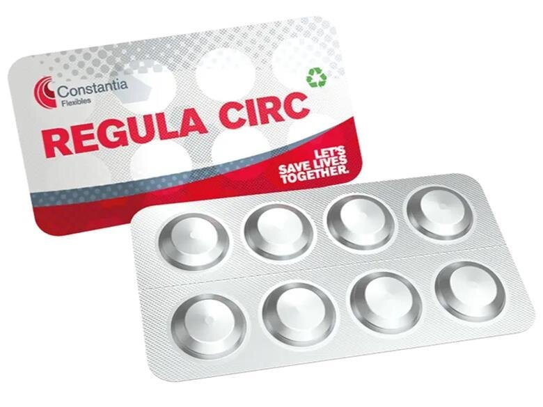 Компания Constantia Flexibles представила REGULA CIRC, свое «полное барьерное решение», предназначенное для вторичной переработки фольги холодного формования для экологически безопасных фармацевтических блистерных упаковок. Полиэтиленовый герметизирующий слой предназначен для замены традиционных решений из ПВХ — переход, направленный на упрощение процесса сортировки, повышение пригодности упаковки для вторичной переработки и, в свою очередь, повышение степени извлечения материала. Также предполагается снизить количество пластика, используемого в упаковке, за счет увеличения доли алюминия в дизайне. Чтобы сохранить безопасность упаковки на протяжении всего ее жизненного цикла, REGULA CIRC разработан так, чтобы противостоять расслаиванию и предотвращать загрязнение продукта внутри. Сообщается о преимуществах защиты от влаги, кислорода, света и газов; Таким образом, Constantia Flexibles заявляет, что фольга продлевает срок годности лекарств и защищает их целостность и эффективность на про