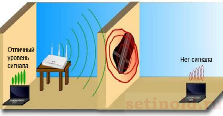 По большей части сигнал блокируют именно перегородки и стены в квартире. Если стены в доме по каким-то причинам укреплены железом, то сигнал может быть очень плохим. Помешать распространению сигнала может и простое большое зеркало. Wi-Fi-роутер надо располагать в наиболее открытой точке.