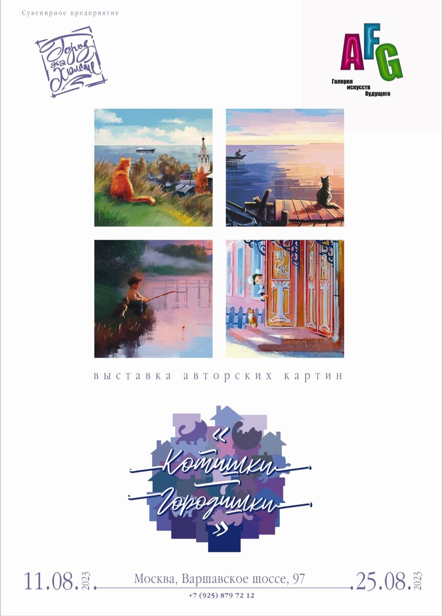 Выставка Авторских картин Валерия Малиновского "Котики Городишки" В галерее искусств будущего Art Future Gallery 11.08-25.08.23 Автор Валерий Малиновский (https://vk.com/art_kamchatka) член Союза Дизайнеров России и член Профессионального Союза Художников. Кроме обычной школы, окончил Вологодскую Художественную школу, Реставрационно-строительное училище г. Ленинграда. Учился в Вологодском политехническом по специальности Архитектура. В северо-западном регионе больше известен как дизайнер и руководитель «Студии Малиновского». Но в 2015 благодаря путешествиям и совместно с женой Натальей Малиновской появляется сначала проект, а потом перерастает уже в сувенирное предприятие «Город на холсте». Все сюжеты создаются вручную, с помощью компьютера и графического планшета. Сейчас среди заказчиков и партнеров: отели Redisson, «Роза Хутор», музеи Кижи, Витославлицы, Семенково, Чеховский музей в Ялте, Ливадийский дворец, аэропорты Симферополя и Ямала. А так же винзавод Массандра. Пред