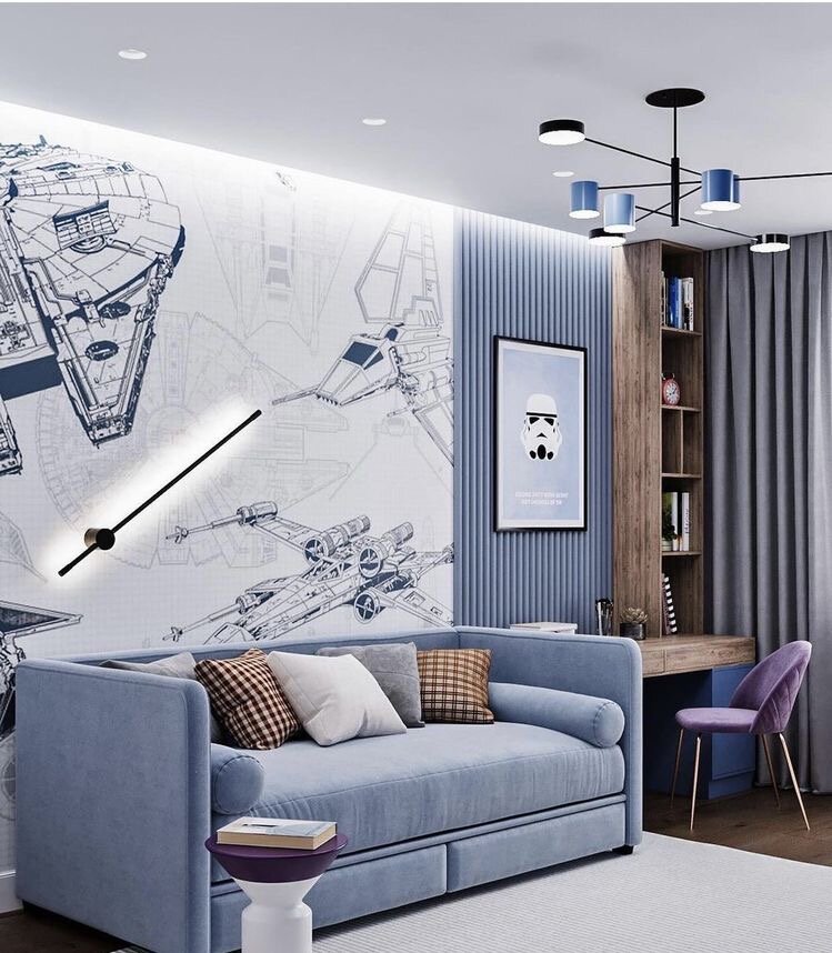 Разбор детской: ◽️Потолочный светильник Nanhui-461 Средняя цена 3 167р. Озон, Светонов ◽️Светильник встраиваемый ST Luce, белый Средняя цена 730р. за 1шт. ◽️Бра BLS Minimal Line Средняя цена 4 900р. Светонов ◽️Подсветка. Лента 24v Day4000 (9.6W/m, IP20,2835, 5m) Бренд: ARLIGHT Средняя цена 585р. за 1метр. Мир Света ◽️Фотообои флизелиновые в детскую Самолеты Средняя цена 5 500р. Обои стайл, Ортограф ◽️3д панели. LV135 NP ПАНЕЛЬ Средняя цена 2 200р./шт Архитектурный декор ◽️Краска Dulux 06ВВ 39/179 Средняя цена 2 057р. за 1л. Dulux, Строй двор, Леруа Мерлен ◽️Кварцвиниловая плитка замковая Fine Floor Strong Дуб Октопус Средняя цена 2532 руб/м2 Орсо бруно ◽️Штора на ленте со скрытыми петлями Inspire Teora 200x280 см цвет темно-серый Moon 1 Средняя цена 4 046р. Яндекс маркет ◽️Пенал и стол Ориентировочная цена от 50 000р. В точности в магазинах такой модели нет, изготовление на заказ. ◽️Столик Ориентировочная цена от 16 000р. В точности в магазинах такой модели нет, изготовлен