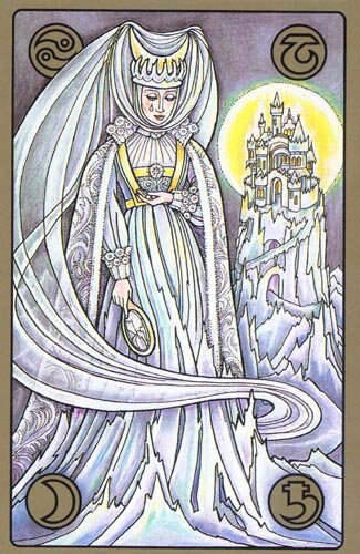 Основные значения карты: застой, отсрочка, умение держать лицо, контроль над эмоциями, внутренняя упорядоченность, холодность и уединение. Вы можете ощутить потребность в самоанализе, размышлении и погружении внутрь себя.