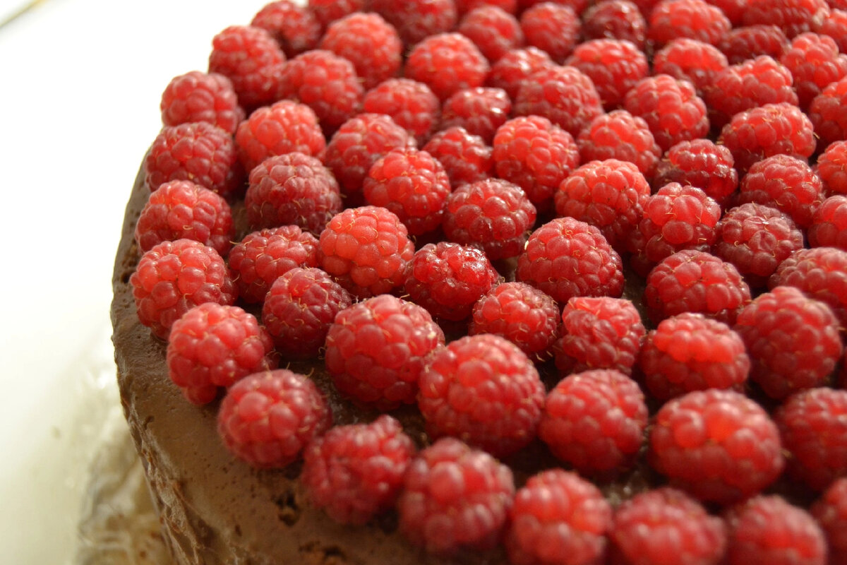 Вот простой рецепт приготовления малиново-шоколадного торта: Ингредиенты для теста: - 200 г темного шоколада - 200 г сливочного масла - 200 г сахара - 4 яйца - 150 г муки - 1 чайная ложка разрыхлителя (пищевой соды или порошка для выпечки) - 1/2 чайной ложки ванильного экстракта - щепотка соли Ингредиенты для крема: - 200 г малины - 250 г сливочного сыра (например, кремчиз) - 200 г сахарной пудры - 1 чайная ложка ванильного экстракта Для декора: -малина Инструкции: 1. Разогрейте духовку до 180 градусов Цельсия. Подготовьте круглую форму для выпечки, смажьте ее маслом и посыпьте мукой. 2. В миске над водяной баней растопите шоколад и сливочное масло, мешая до гладкости. 3. В другой миске взбейте яйца, сахар, ванильный экстракт и соль до получения однородной смеси. 4. Постепенно добавляйте теплую шоколадную смесь во влажные ингредиенты, перемешивая до получения однородного теста. 5. Просейте муку и разрыхлитель через сито в тесто и качество перемешайте до полного соединения ингредиенто