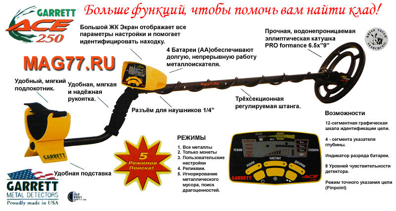 Металлоискатель Garrett Ace 250 или так называемая Аська,. Именно такое имя получил этот прибор от людей увлекающихся копом металла и старины. Этим прибором пользуются как новички, так и матерые поисковики, за плечами которых не только медяки Николая ІІ, но и поднятые на поверхность земли реальные клады монет, стоимостью, иногда, в тысячи, а то и десятки тысяч рублей. Чем же понравился этот прибор камратам? Во-первых – своей ценой. 20к не такие уж и большие деньги, а учитывая, что прибор может элементарно окупится уже после первого похода по исчезнувшей деревне или месту, где в старину стояла корчма, даже по тому же общественному пляжу. Ведь сегодня цены даже на самые рядовые монеты довольно высоки. Естественно, что таким же образом может окупится и металлоискатель подороже, но шансы на это на несколько порядков ниже, чем в случае с Acькой. Во-вторых – простота в использовании. Даже новичок с легкостью может разобраться в этом приборе. Он не нуждается в дополнительных настройках. Прост