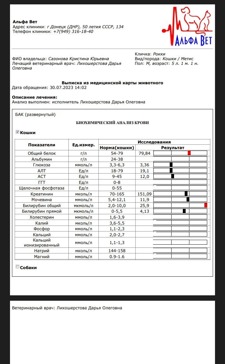 Здравствуйте. Вчера волонтер Кристина Сазонова получила результаты анализов крови Рокки. Честно, хозяйка домашнего мини-приюта вообще ничего не понимает. Рокки и Сэм: понимать больше мы будем только в понедельник По предыдущим анализам из Грэты у нас была почечная недостаточность, сейчас с почками всё хорошо, но вот печень получается в критическом состоянии! Билирубин просто зашкаливает, хотя в прошлых анализах он был в норме, но на УЗИ в Грэте сказали что печень плохая. Кристина С. ещё тогда была удивлена, УЗИ показало плохую печень, а кровь не показала.