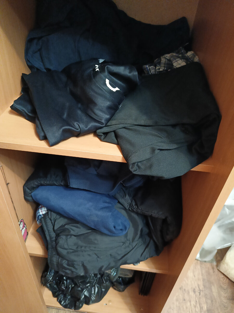 Недавно писала статью про шифоньер мужа, у которого там всегда бардак. Кратко расскажу историю. У нас с мужем разные шифоньеры. В его шифоньере всегда бардак примерно вот такой В моем шифоньере порядок, все аккуратно разложено В первое время я пыталась бороться с бардаком мужа. Чуть ли не ежедневно складывала в стопочки все раскиданное, в итоге мне это надоело, стала просто спихивать после стирки вещи на полку. Но так ,как мне приходиться ходить в ту комнату и видеть этот хаос ,то я решила сократить количество вещей на его полке до минимума. Может тогда ,что то более менее будет походить на порядок Мне это помогло, поэтому подумала, что и в этом случае поможет Разложила все по полочкам. Домашнее отдельно,вещи для выхода отдельно. Сделала все красиво, единственное ,что не подписала, где какое лежит . Кстати это идея!!! В итоге, все мои старания не привели абсолютно ни к чему Через какое-то у него снова образовался бардак Правда сейчас уже в меньшем количестве. Получается ,что помимо
