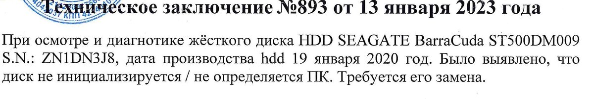 Покупал я жесткий диск на свой новенький компьютер, в прошлом году как раз. Хотел очень сильно сэкономить. Жесткий диск стоил на ОЗОН.РУ на 1500 рублей дешевле чем в компьютерном магазине. Ну все мы уже активные пользователи маркетплейс, чего бояться, тем более гарантия от озон, от производителя и бла бла бла. В общем купил. Радостный установил, не работает. Конечно я подумал, что это я рукож*п. Поэтому отдал своему знакомому компьютерщику. Тот его ко мне попробовал ставить, потом себе. Вердикт - не работает! Знакомый сказал: "Тащи его на экспертизу, пусть проверяют, дают официальное заключение, либо ремонт если такое вообще может быть возможно и сдавай его мол обратно!" Уточню, что я л*х, так как диск этот я первый раз себе попробовал установить только спустя 3 месяца! Возврат просто так был невозможен! Я пошел на экспертизу, слава всем, отвалил всего 150 рублей! Алилуя. Бумажку мне отдали! Я реально говорю, не вру! Ну я воодушевленно бегу фотать жесткий диск, подгружаю все это дел