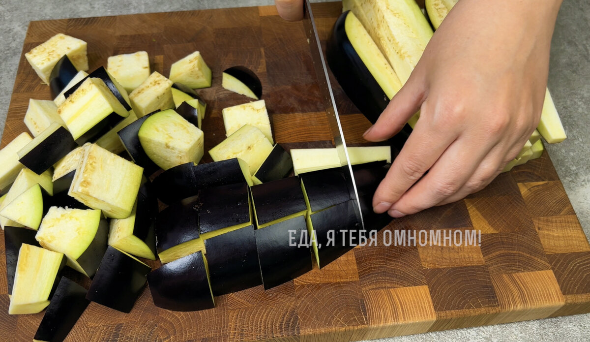 ✅ Баклажаны режем крупным кубиком, присыпаем солью и оставляем просолиться на 20 минут. ✅ Спустя 20 минут баклажаны промываем, отжимаем, всыпаем муку, кукурузный крахмал и тщательно перемешиваем. ✅ Обжариваем баклажаны на сильном огне в большом количестве масла до румяной корочки, а затем откидываем на бумажное полотенце, чтобы избавиться от лишнего масла. Я жарю небольш