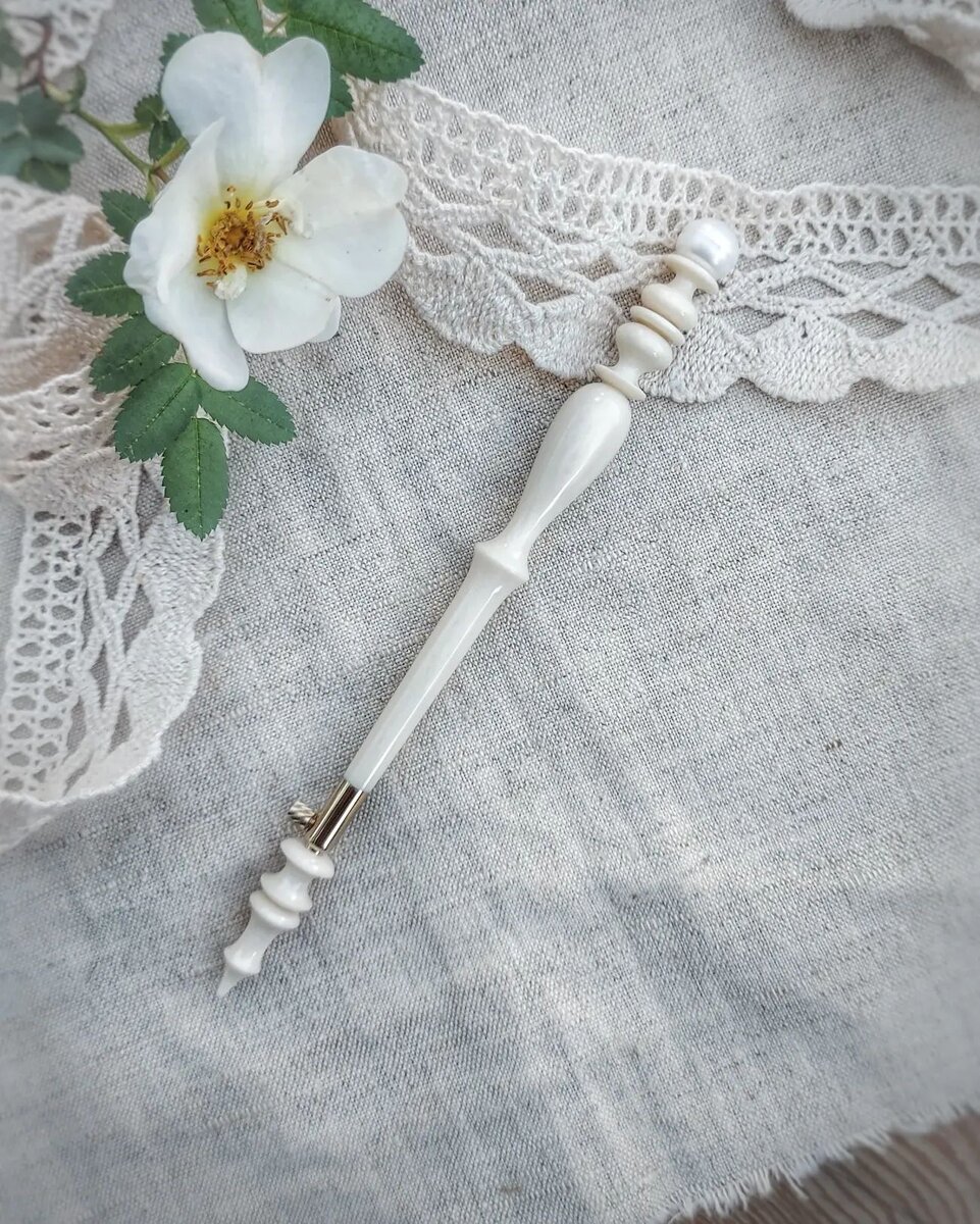 Приветствую всех любителей вышивки и рукоделия! Сегодня хочу поделиться особенным проектом, который был сотворен на заказ для одной талантливой мастерицы. 💫🧵 🌟 Представляю вашему вниманию уникальный крючок для Люневильской вышивки, созданный мной из искусственной кости и украшенный натуральным речным жемчугом. 💎 Каждая деталь этого крючка продумана до мельчайших деталей. Искусственная кость, из которой он изготовлен, обладает не только прочностью, но и нежностью при прикосновении к ткани. А речной жемчуг, расположенный на рукоятке крючка, добавляет неповторимости и блеска. 🌸 Этот крючок станет надежным помощником в творческом процессе. 🎁 Дорогая мастерица, я рад, что смог создать для вас такой особенный инструмент. Я уверен, что он станет вашим верным спутником в каждом вашем творческом шаге. ✨ Друзья, если вы также хотите приобрести уникальный крючок для Люневильской вышивки, свяжитесь со мной в личных сообщениях. Ваше творчество заслуживает только лучших инструментов! 🌟
