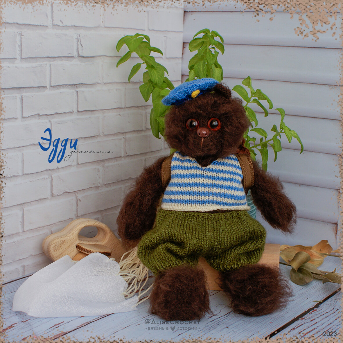 Однажды мишка-пчеловод Эдди решил стать десантником. Он начал тренироваться каждый день, чтобы стать сильнее и быстрее. Но когда он пришел на свой первый прыжок с парашютом, то понял, что это не так просто, как он думал. Мишка был очень напуган, но он не сдавался. Он продолжал тренироваться и учиться, пока не стал настоящим десантником. Теперь он мог прыгать с парашютом без страха и управлять своим телом в воздухе. После этого Мишка понял, что не все в жизни дается легко. Но если ты веришь в себя и готов работать над собой, то можешь достичь любых целей. Техника: вязание спицами Размер: 30 см Мастер класс: автор Nelly Дата проекта: 28.07-30.07.2023 Материалы: пряжа, спицы № 2,5 (для игрушки) и 3,0 (для одежды), наполнитель, глазки 15 мм, нос 15х11 мм из полимерной глины, игла, нить, для парашюта: ткань, нити, клей, лента, проволока Источник описания модели: интернет ПАРАШЮТ Парашют делается из квадратного куска бумаги, сложенного сперва вдвое, затем вчетверо, а затем разрезанного п