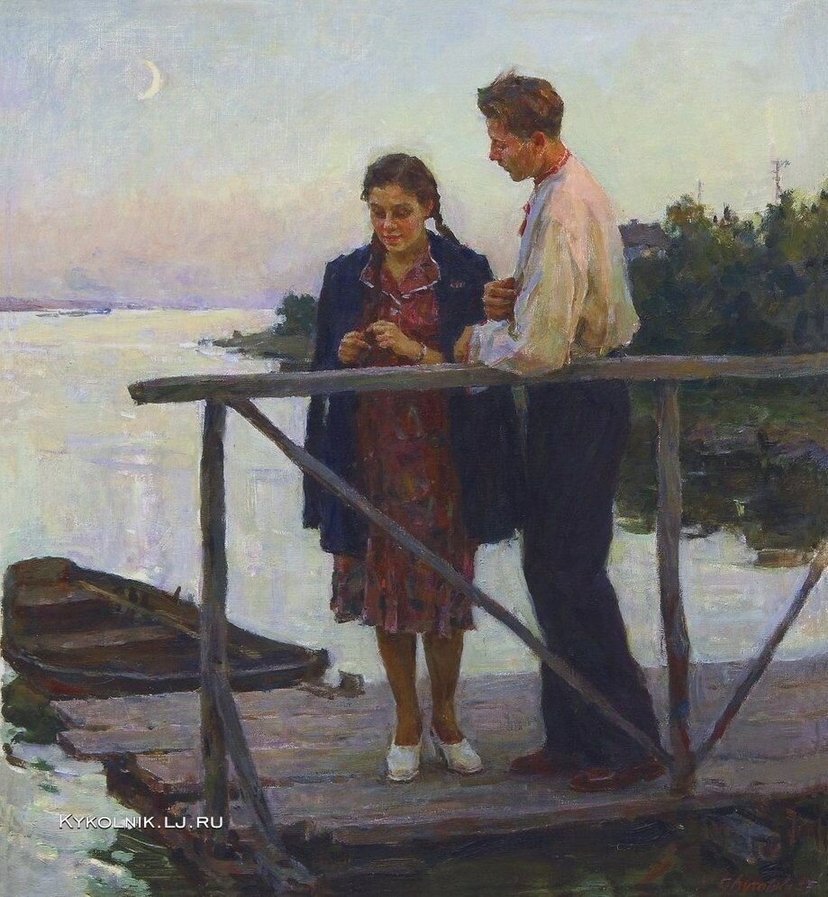 На первом свидании пошли мы на танцы. Поскольку электричества, в ту пору в деревне не было, то от деревенских забот молодежь находила себе отдушину в танцах под гармонь. На всю деревню было два гармониста, но чаще всего играл Гришка Рыжий - обыкновенный, можно сказать, неприметный парень лет тридцати. Между тем, у девушек он пользовался большим уважением. Танцплощадкой служил вытоптанная трава на лугу. Танцевали только девушки – от шестнадцати лет и до замужества, ребята стояли по периметру, так называемой, танцплощадки, тут же младшие дети путались под ногами.