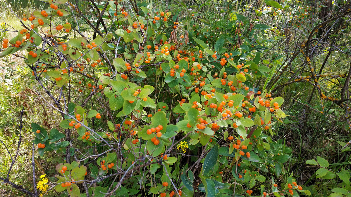 Признаюсь, ранее об этом растении не знал, не видел, и тем приятнее было его найти у нас в черте города (Н.Новгород). Вообще, сама прогулка проходила летом, в окрестностях парка Швейцария, и продвигаясь по дороге, примерно метров с десяти увидел, что-то оранжевое. Первая мысль была - какой-то шиповник, так как в том районе он встречается, ну и ещё на облепиху подумал, о чем уже писал. Облепихи у нас на набережной полно, что для меня тоже было в диковинку. Но, каково же было мое удивление, когда приблизившись к кустарнику, я увидел это растение. Так как это была первая встреча, названия не знал, сфоткал его, а дома уже определил (надеюсь, верно), что это Татарская Жимолость. Как видно по фото - это кустарник, причем встречаются и заросли, и думаю, что все это смотрится очень красиво, ведь сам кустарник может достигать несколько метров в высоту, а самим плодам предшествуют и цветочки (в период цветения), что несомненно должно выглядеть красиво. Важный момент, уже дома узнал, что данный