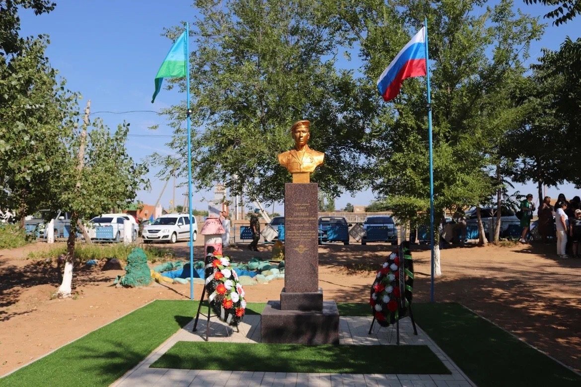 Сегодня, в День воздушно-десантных войск, в селе Владимировка Енотаевского района торжественно открыли мемориальную доску памяти кавалера Ордена мужества Амангельды Кенжиева. Доска установлена на стене Владимировской школы. В этом году исполнилось 23 года со времени гибели десантников 6-й роты 104 полка 74 дивизии ВДВ в Аргунском ущелье. Астраханец, Гвардии рядовой, старший стрелок войсковой части 32515, кавалер Ордена мужества Амангельды Кенжиев был в числе погибших. Второго августа 2020 года на территории Владимировской школы был установлен бюст герою. И сегодня в продолжение традиций преемственности поколений и сохранения памяти о героях Отечества в честь Амангельды Кенжиева появилась мемориальная доска. О том, как в Астрахани отмечают День ВДВ, читайте и смотрите здесь.