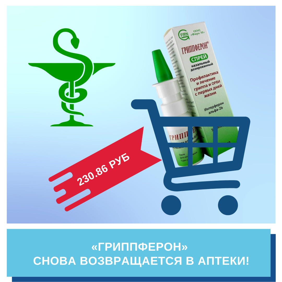 В августе назальный спрей «Гриппферон» снова вернется в аптеки, что в преддверии осени будет хорошей поддержкой покупателям для профилактики ОРВИ. Это станет возможным благодаря тому, что Федеральная антимонопольная служба (ФАС) РФ согласовала предельную отпускную цену на этот лекарственный препарат. Об этом служба сообщила в своем Telegram-канале. В сообщении указано, что "Предельная отпускная цена производителя на препарат для профилактики и лечения гриппа и острых респираторных вирусных инфекций составит 230,86 рубля без учета НДС и торговых надбавок" Согласование цены позволит возобновить реализацию лекарственного препарата, которая была временно приостановлена с августа 2022 года в связи с его отнесением к перечню жизненно необходимых и важнейших лекарственных препаратов, отметили в ФАС. До этого ФАС уже дважды был проведен экономический анализ предельных отпускных цен, заявленных производителем но, из-за превышения стоимости, рассчитанной в соответствии с требованиями законод