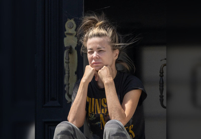«Нью-Йорк пост» получил эксклюзивные фото, на которых Кармен Электра запечатлена в редком натуральном виде – сидит явно расстроенная и сгорбленная на крыльце своего дома в минувшее воскресенье (30 июля).