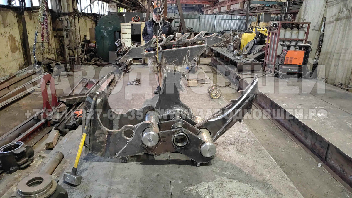 Оригинальный многофункциональный корчеватель «Дятел» производства «Завода Ковшей» состоит из главной (неподвижной) и рабочей рам. Главная рама неподвижна относительно рабочей (подвижной) рамы, но имеет возможность поворота относительно рукояти экскаватора. Оба узла фирменного навесного оборудования представляют собой сварные конструкции, шарнирно соединённые между собой. Главная рама снабжена двумя парами проушин для монтажа корчевателя на рабочее оборудование полноповоротного экскаватора и двумя другими парами проушин для установки одного или двух гидроцилиндров привода подвижной рамы. Для подключения фирменного изделия в базовой машине должен присутствовать гидравлический контур дополнительных сменных устройств с необходимыми давлением и расходом. Корчеватель «Дятел» функционирует на полноповоротном экскаваторе массой от 24 тонн. Производство корчевателей в СПБ: 8-911-927-67-35 Анатолий Григорьевич